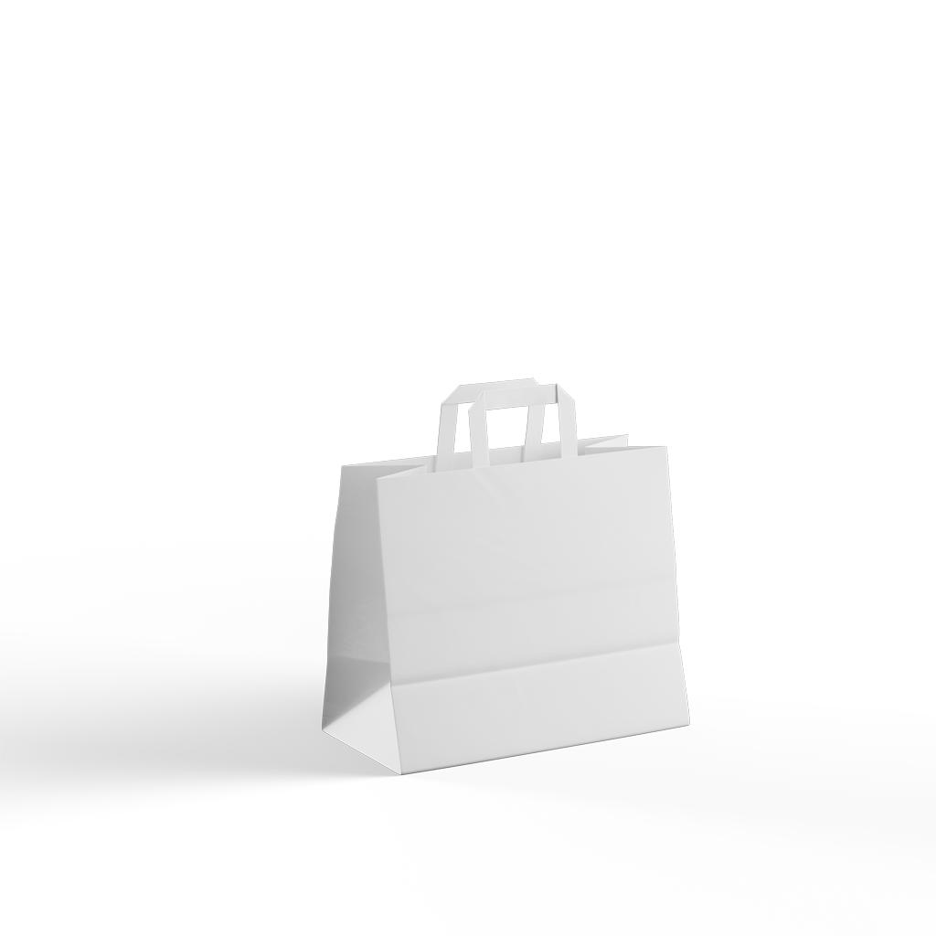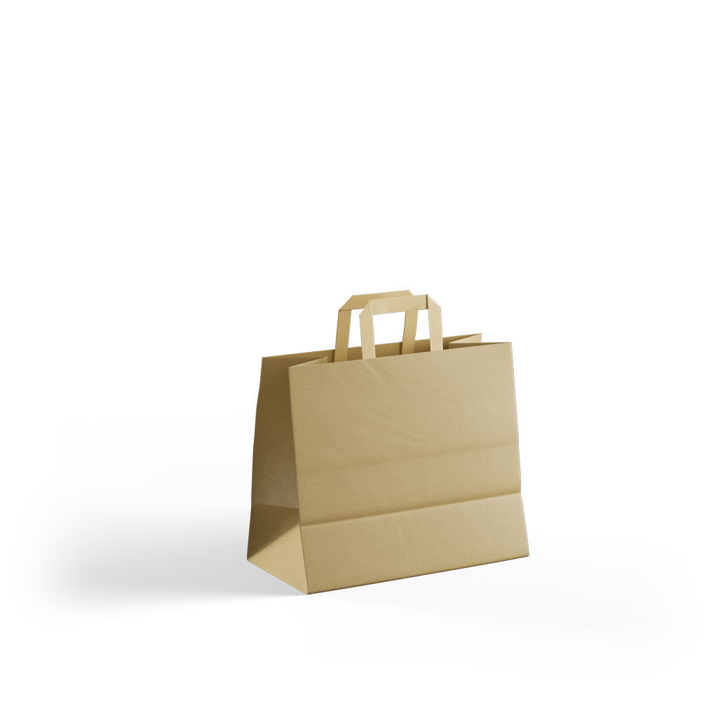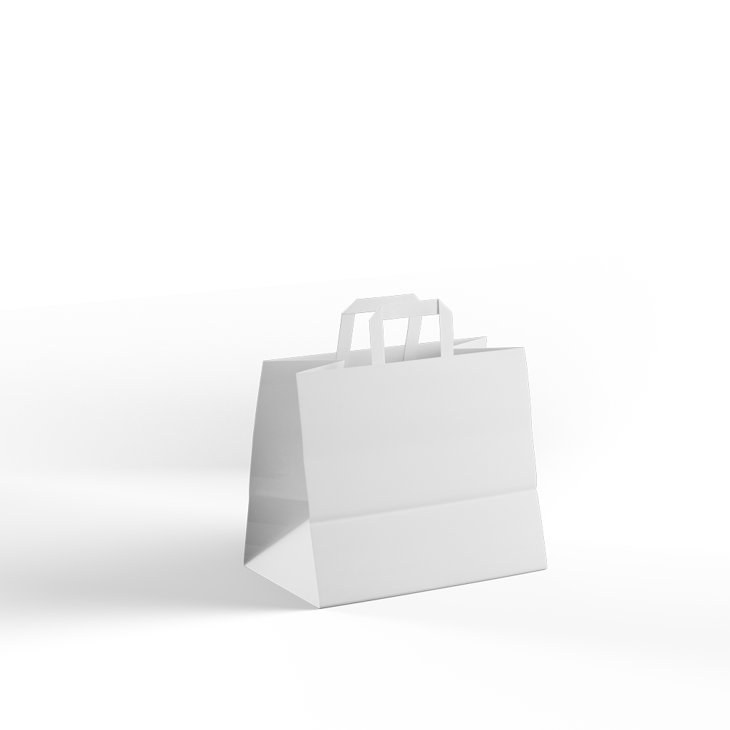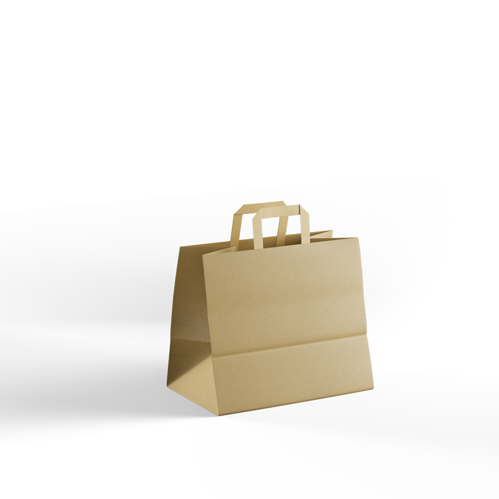 Papiertragetaschen mit breitem Boden sind vielseitig einsetzbar. Sie sind sehr beliebt bei Anbietern von Imbissbuden oder für alle anderen Verpackungen, bei denen der sichere Transport des Produkts/der Verpackung wichtig ist. Dank des breiten Bodens eignen sie sich auch für den Transport verschiedener Behälter oder Töpfe mit Lebensmitteln.