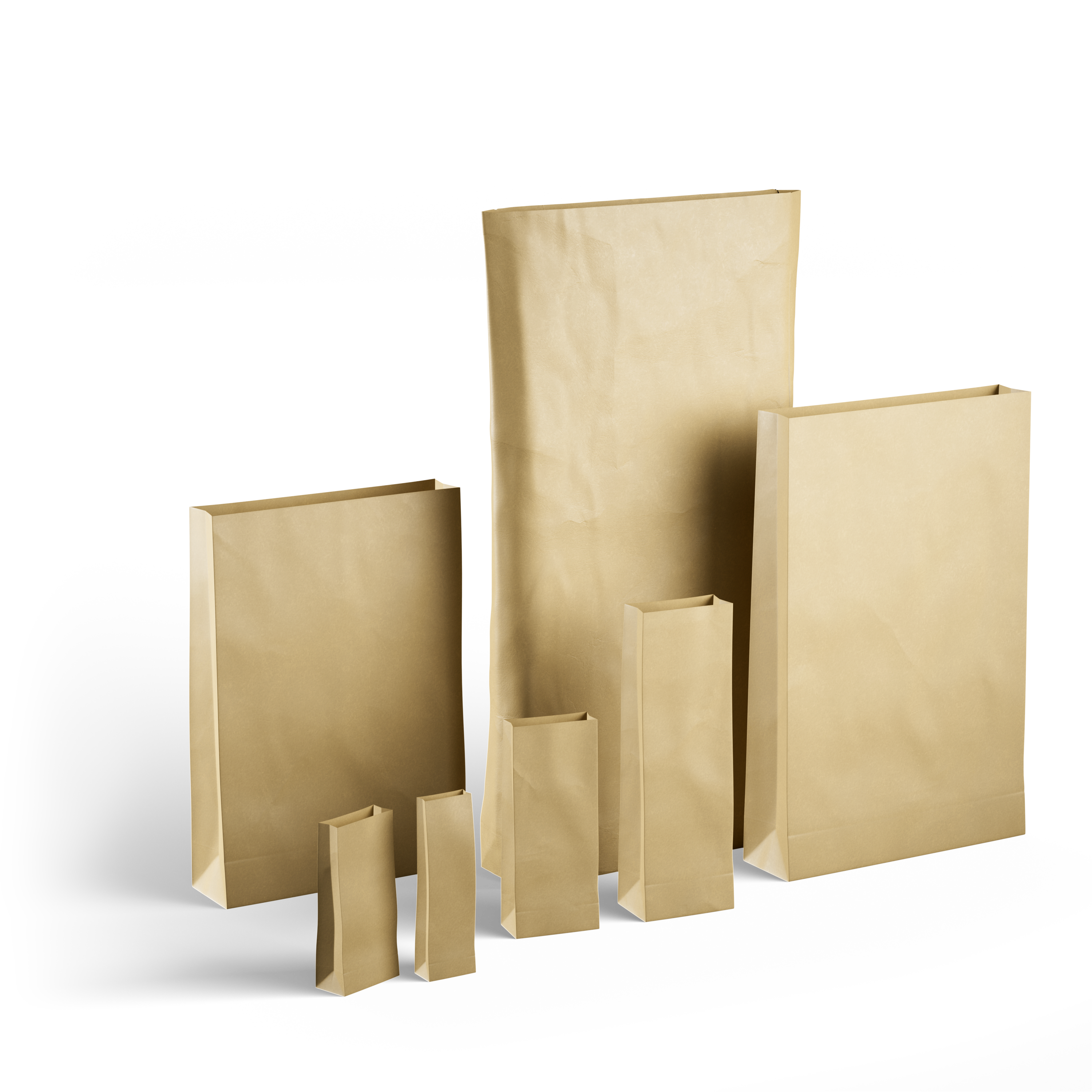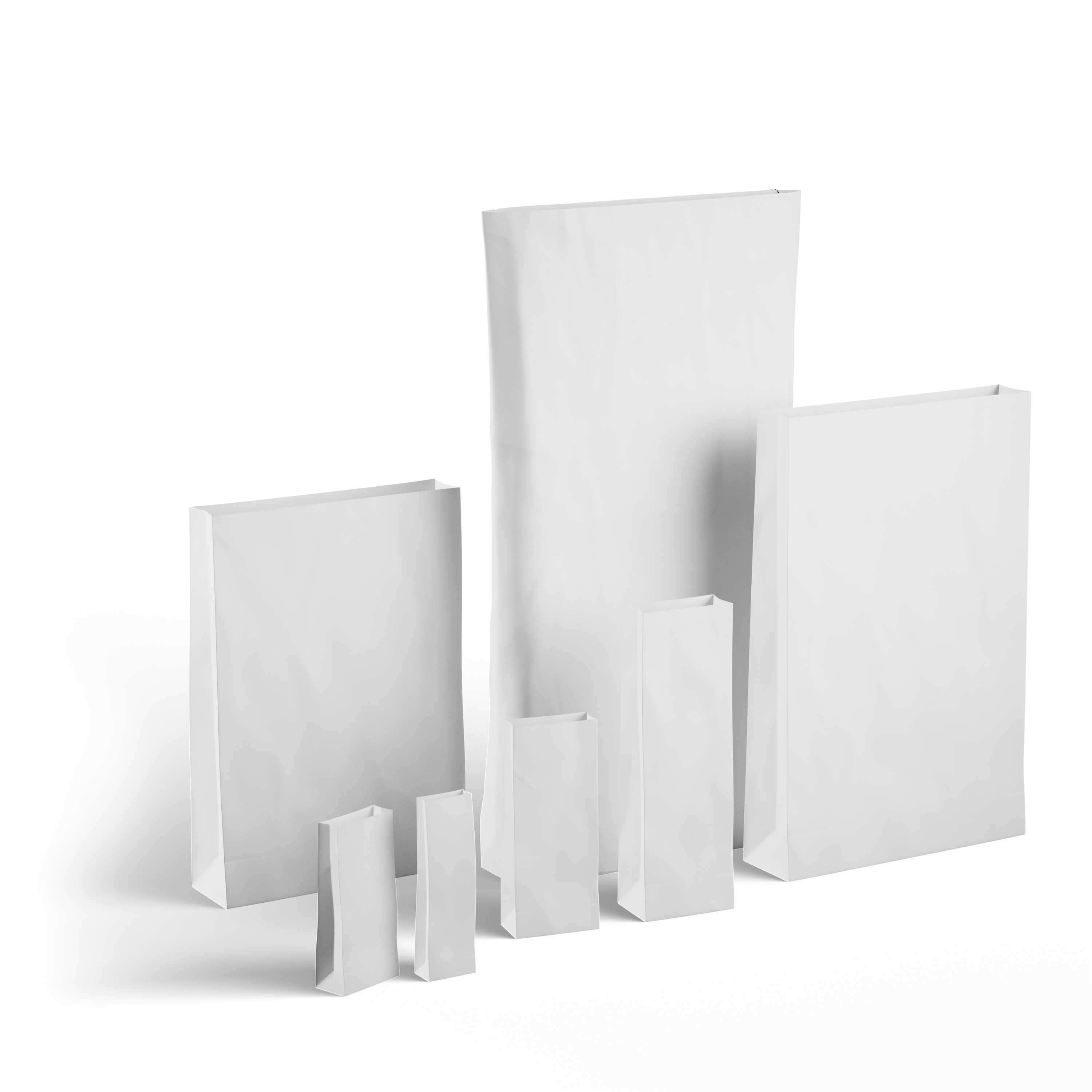 Small packaging bags are made of single-layer paper and are available with capacities from 0.5 kg to 2 kg. Large packaging bags are available from 5 kg to 50 kg, with the possibility of single- or double-layer bags and in combination with PE. Bags from stock are available extremely quickly.
